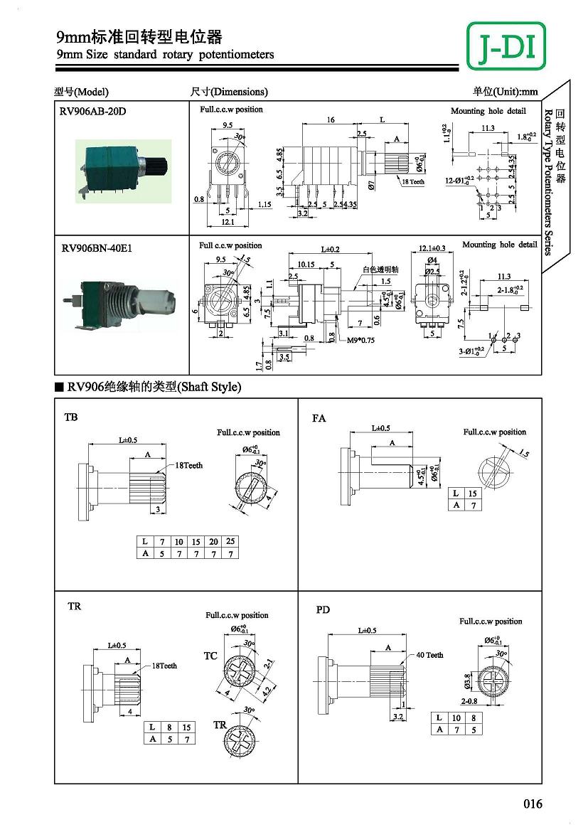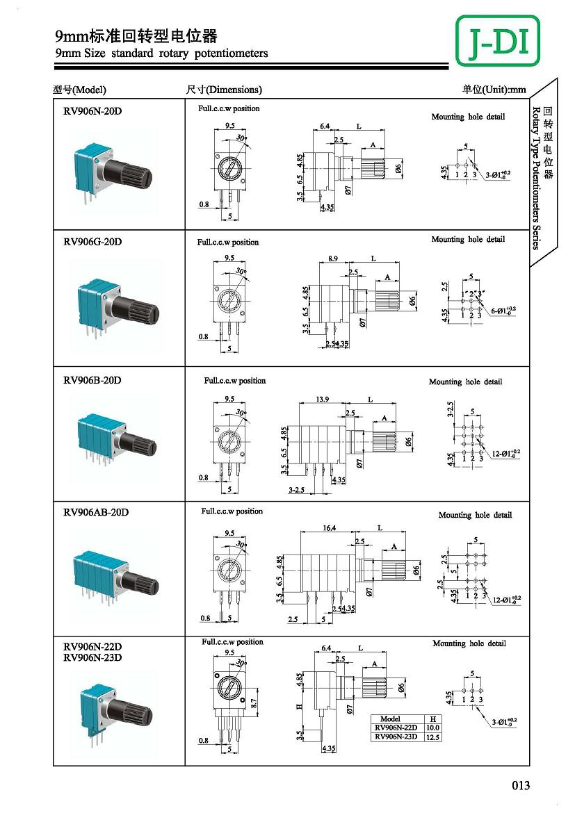 首页 > 产品展示 > 回转型电位器 > RV901 >  9mm 塑封式绝缘轴电位器