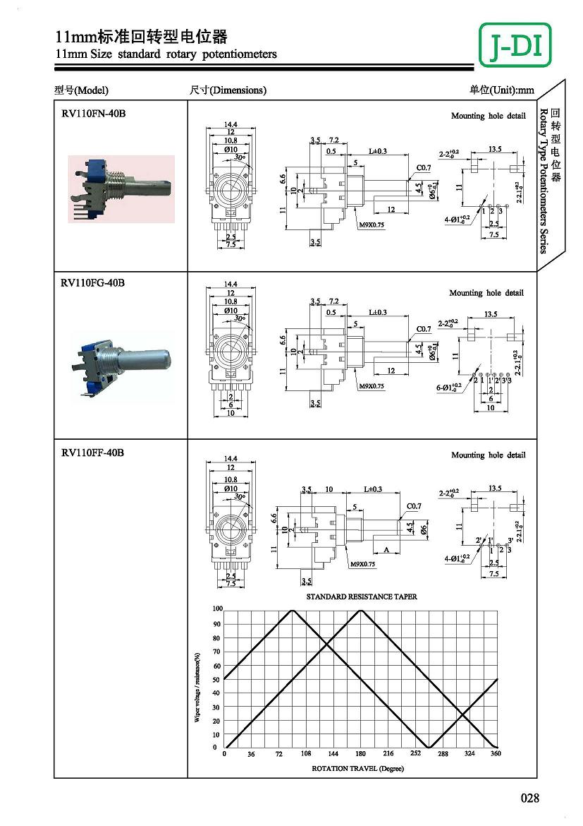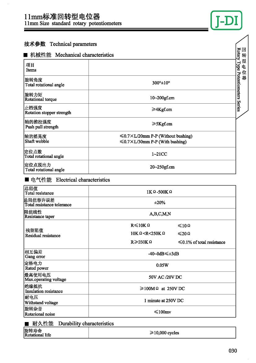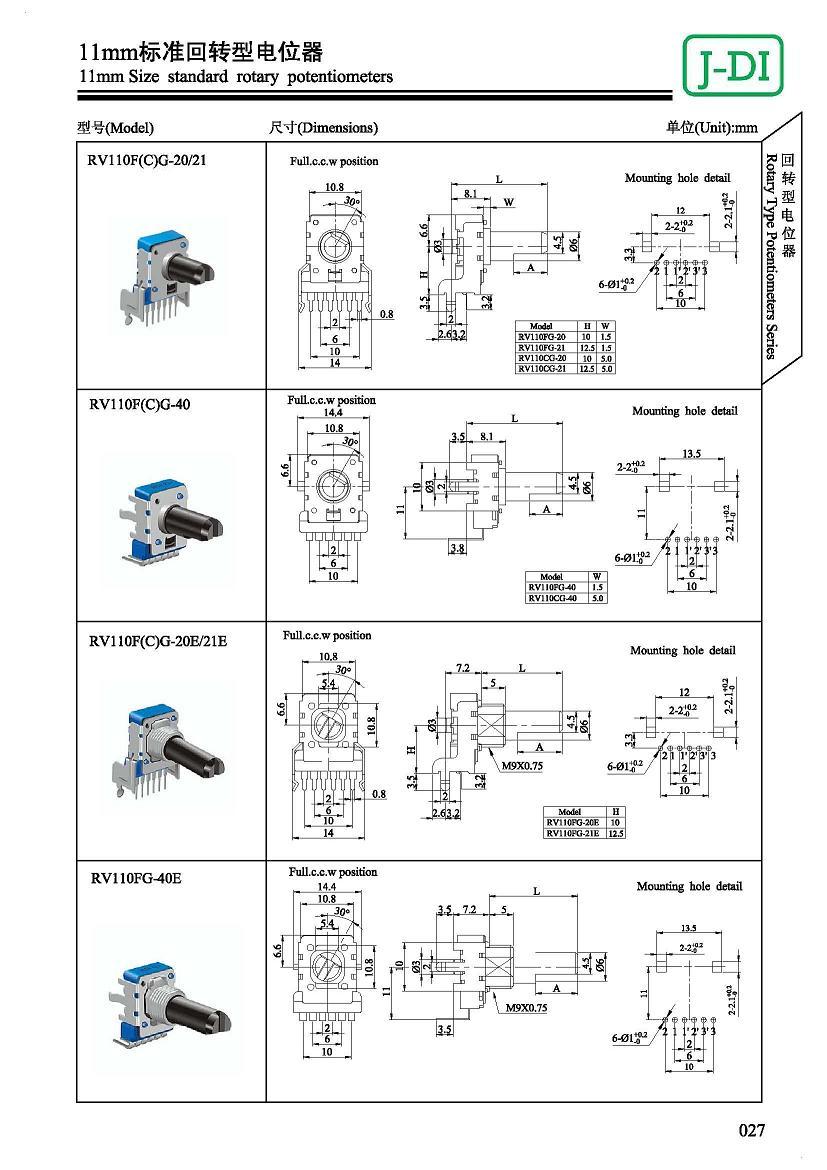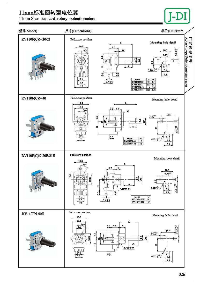 首页 > 产品展示 > 回转型电位器 > RV110 >  11mm塑封式绝缘轴电位器