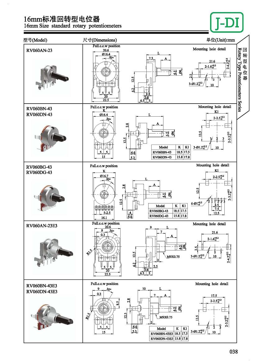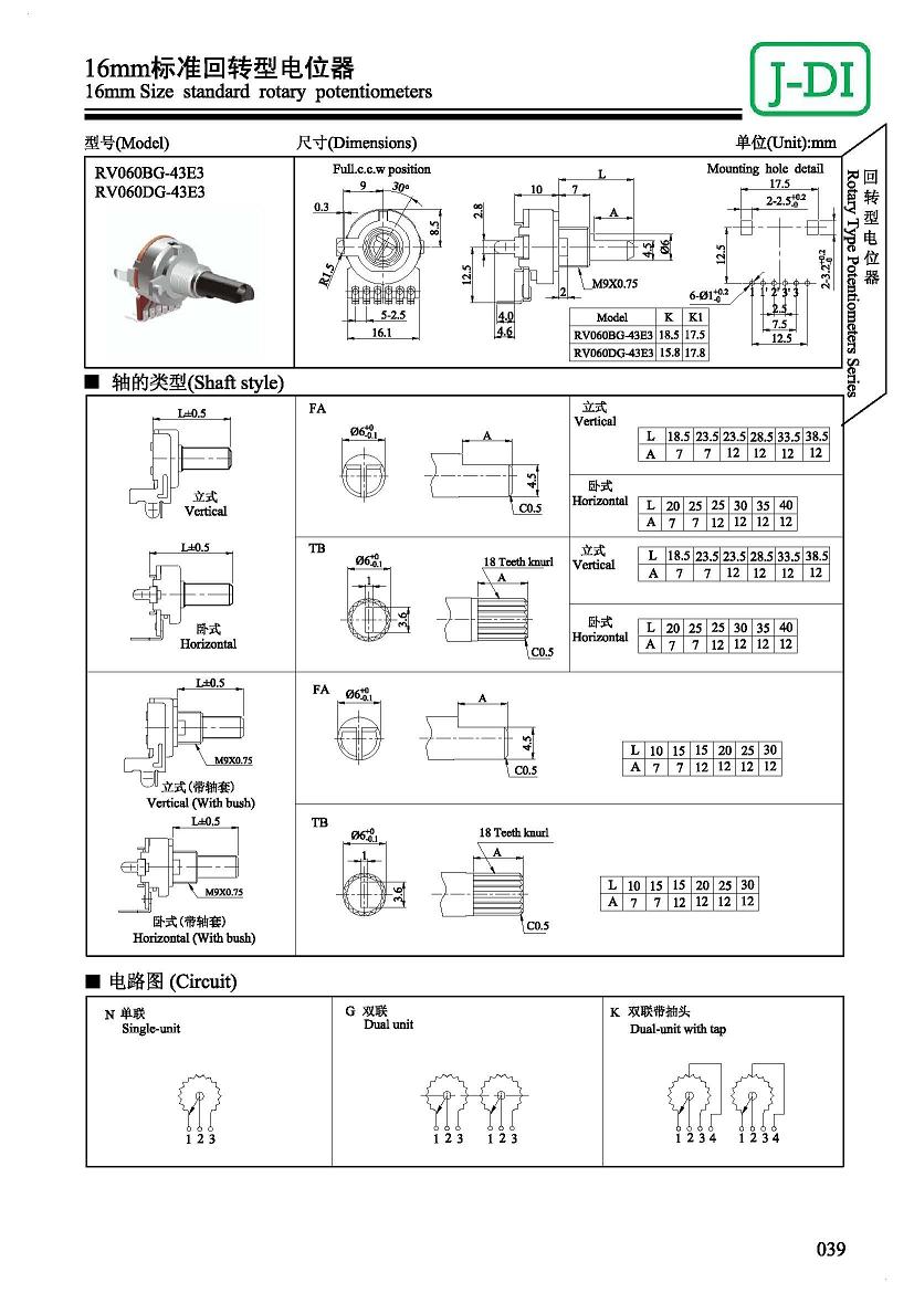 首页 > 产品展示 > 回转型电位器 > RV060 >  16mm 标准回转型电位器