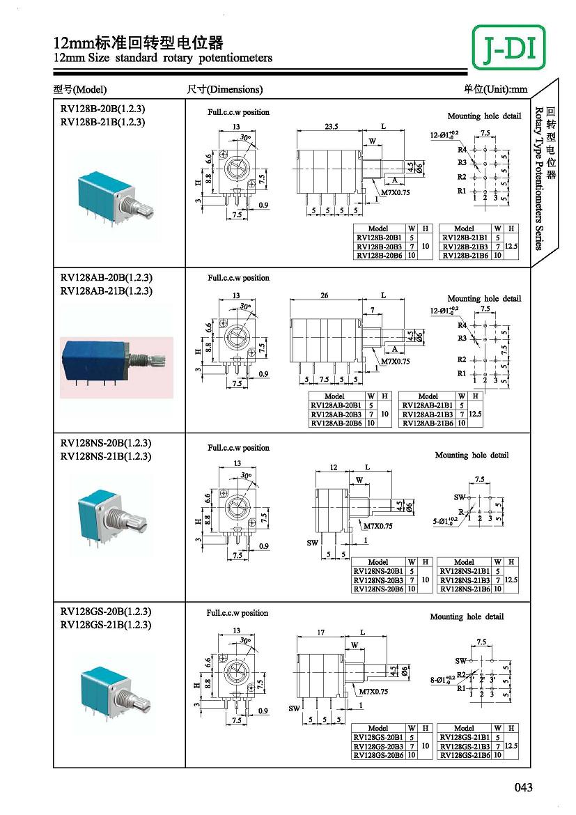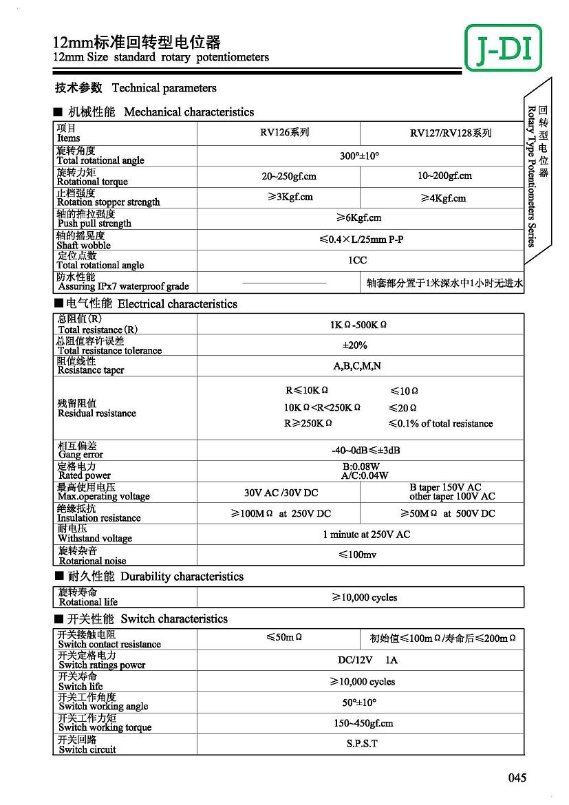 首页 > 产品展示 > 回转型电位器 > RV12 >  12mm 标准回转型电位器