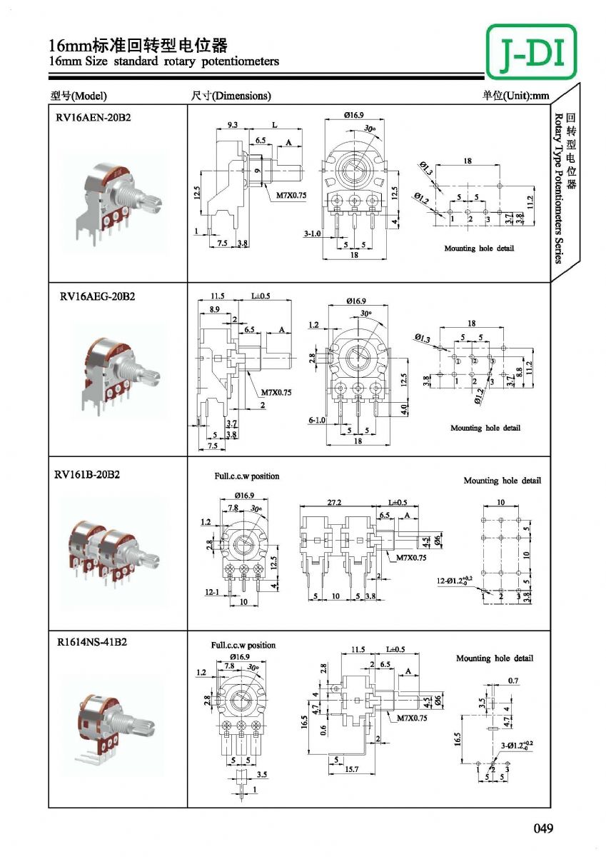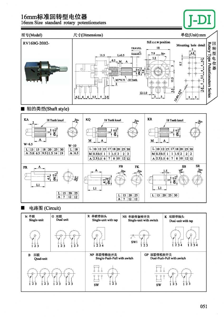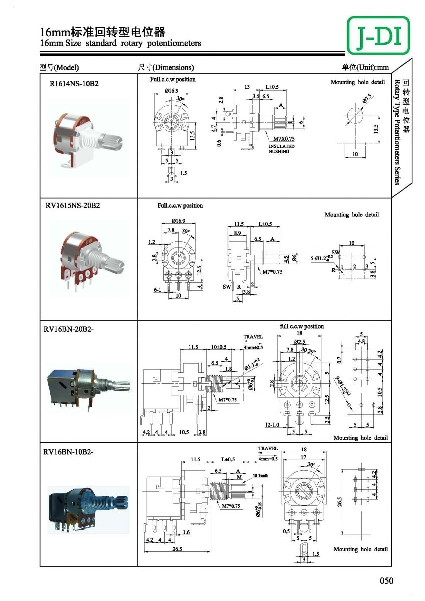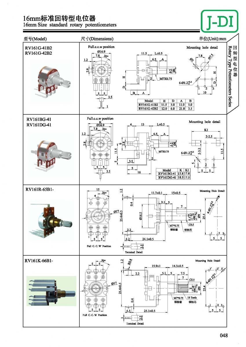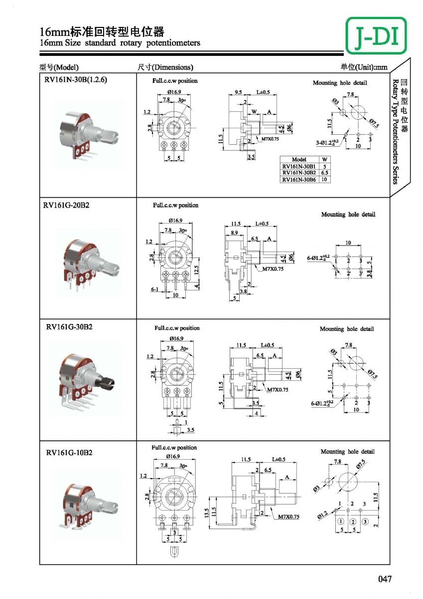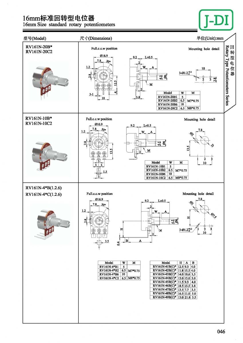 首页 > 产品展示 > 回转型电位器 > RV161 >  RV161标准回转型电位器