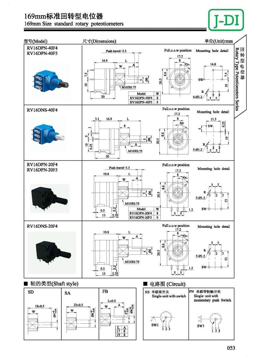 首页 > 产品展示 > 回转型电位器 > RV169 >  16mm 标准回转型带开关电位器