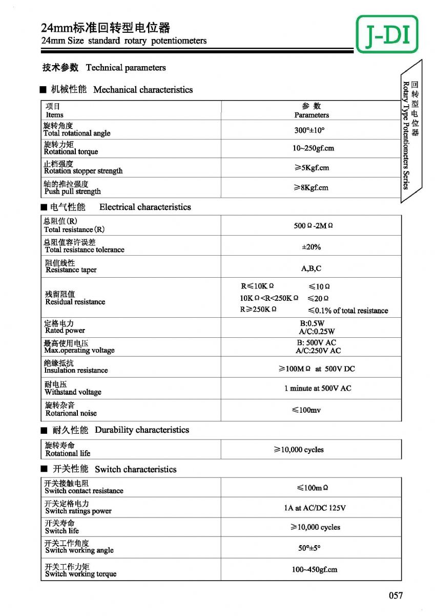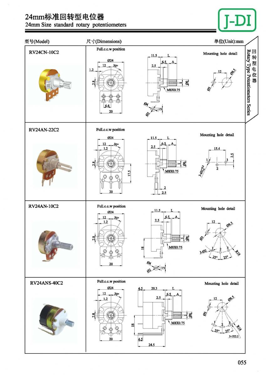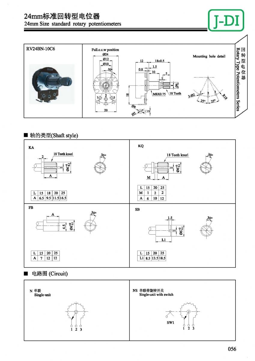 首页 > 产品展示 > 回转型电位器 > RV24 >  24mm标准回转型电位器