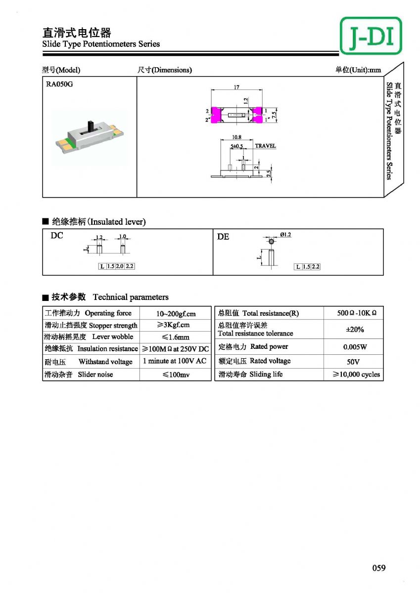 首页 > 产品展示 > 直滑式电位器 > RA05 >  5mm 直滑式电位器